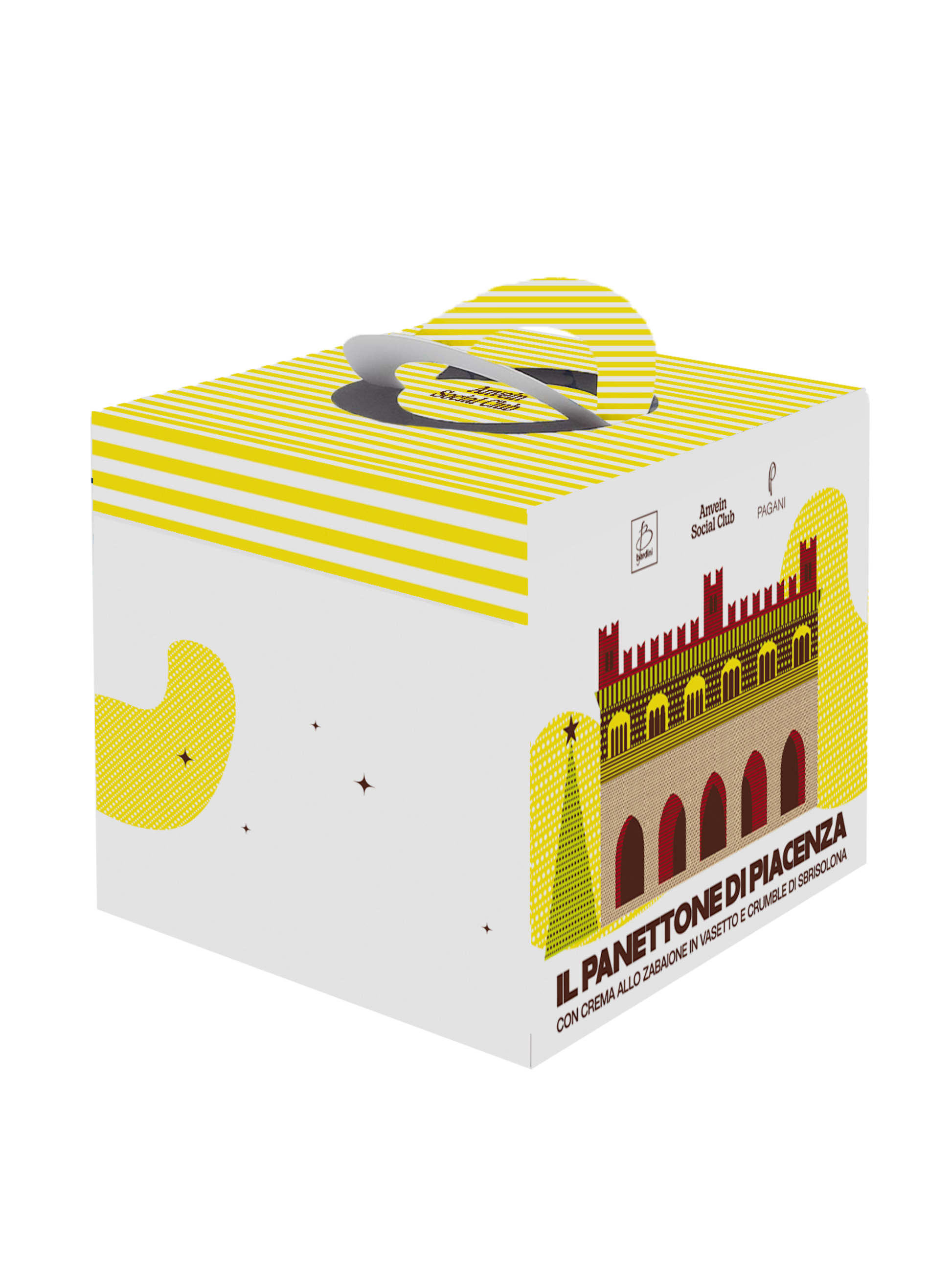 Un panettone artigianale realizzato da Bardini che celebra la tradizione piacentina. Morbidissimo, profumato e dal gusto autentico, viene accompagnato da una ricca crema allo zabaione in vasetto, da spalmare a piacere, e da un croccante crumble di sbrisolona firmati entrambi Pagani.